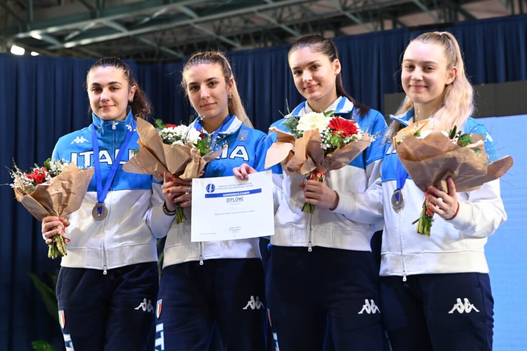EUROPEI GIOVANILI “NAPOLI 2024” – DUE MEDAGLIE E TANTE EMOZIONI CON LE SQUADRE AZZURRINE UNDER 17! SCIABOLATRICI D’ORO, ARGENTO PER LE FIORETTISTE. ITALIA SEMPRE PIÙ IN VETTA AL MEDAGLIERE
